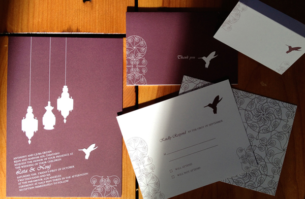 Wedding invitation, RSVP, thank you cards, place cards